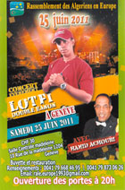 08.06.2011 - Le Rassemblement des Algériens en Europe organise samedi 25 juin 2011 un concert à la salle centrale de la Madeleine, 10 Rue de la Madeleine à Genève ou se produiront Lotfi Double Kanon et l'humoriste Hamid Achouri. Buvette et restauration assurées. Renseignements : Tél. 0041 79 668 46 95 / 0041 79 873 06 26, email. rale.europe2gmail.com.