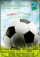 15.06.2011 - Le Rassemblement des Algériens en Europe organise dimanche 19 juin 2011 un tournoi de football à Bienne BE(Biel). Contact : Tél. 041 79 472 53 54/041 79 873 06 26.
