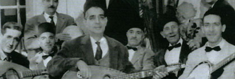 En avant-plan, Hadj M'Hamed El Anka (1907-1978), chantre de la musique populaire algéroise