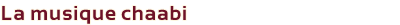 Qui dérive de la musique arabo- andalouse, est née dans les quartiers populaires d’Alger dans la première moitié du XXème siècle. Elle est interprétée dans la langue populaire, dialecte de la capitale (d’où son nom de chaabi qui veut dire populaire en arabe) par des maîtres parmi lesquels : Hadj M'Hamed El Anka, Maâzouz Bouadjadj, Boudjemaâ El Ankis, El Hachemi Guerouabi, Dahmane El Harrachi, Slimane Azem, Abdelkader Chaou, Amar Laachab, Amar Zahi, Abderrahmane Koubi, Abdelmadjid Meskoud…
