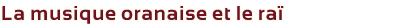 La musique oranaise tire sa spécificité par le mélange harmonieux entre le badaoui traditionnel et le moderne. Ces principaux maîtres sont : Ahmed Wahbi, (chanteur compositeur), Blaoui Houari. Le rai est né dans la région d’Oran ,il s’exprime en arabe dialectal. C’est une forme musicale qui résulte de l’union de la musique bédouine, des sonorités latines et arabo andalouse.